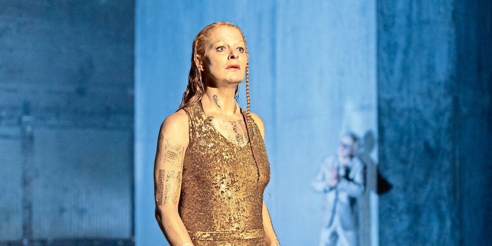 Die wunderbare Christiane von Poelnitz spielt die Königin Atossa: eine hohe, goldgelackte Frau, in deren Gesicht sich das Ende der Perser und die Angst um ihren Sohn Xerxes spiegelt. Branko Samarovski steigt auf Kothurnen als König Dareios aus dem Hades, um die Hybris des Sohnes zu tadeln. Am Ende erscheint der geschlagene Feldherr Xerxes (Merlin Sandmeyer), blutig und nackt. Heulend verbirgt er sein Haupt im Schoß seiner Mutter. Beeindruckend!