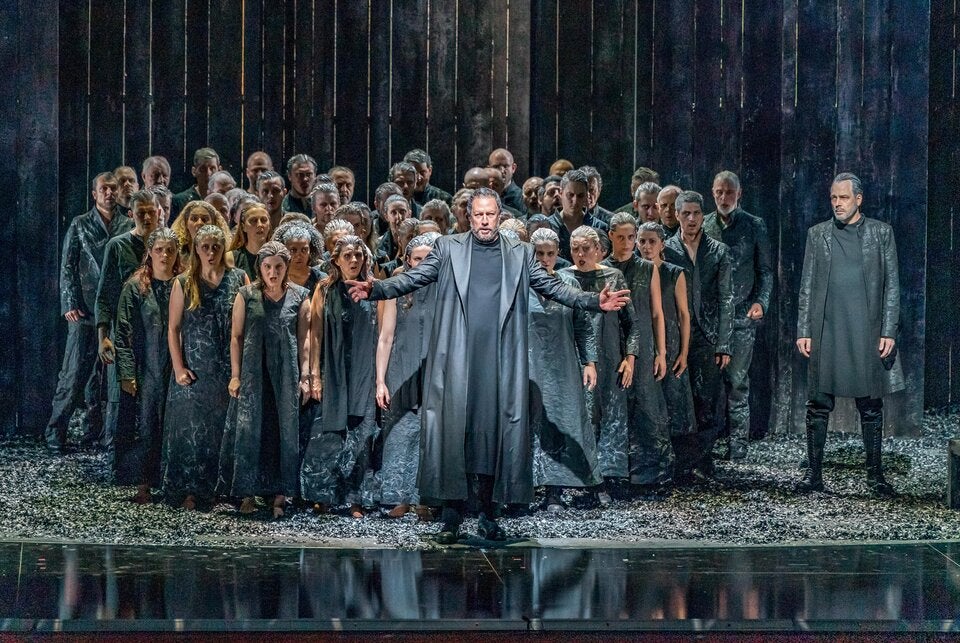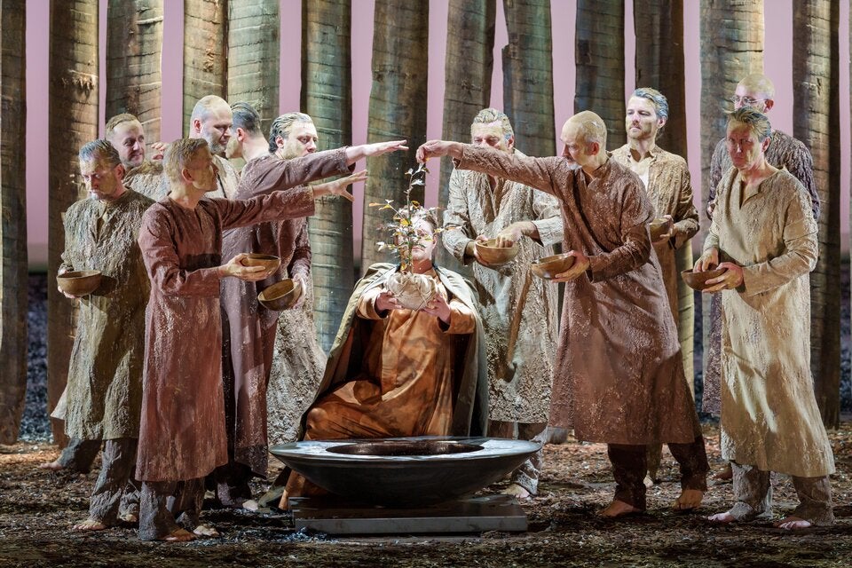 Doch der mit fast dreieinhalb Stunden ein wenig lang geratene Abend ist nicht nur ein Ohren-, sondern auch ein Augenschmaus. Regisseur Andreas Kriegenburg setzt weniger auf psychologische Personenführung als auf ein prägnantes optisches Konzept und ordnet jedem der vier Akte einen anderen Stoff zu. Die Tragödie des Ödipus führt über das Feuer ins Wasser, von dort über die Asche ins Holz. Das klingt banaler als es ist und sorgt durch eine Zusammenarbeit von Bühnenbildner Harald B. Thor, Kostümbildnerin Tanja Hofmann und Lichtdesigner Andreas Grüter in jedem Akt für einen stimmigen Gesamteindruck.