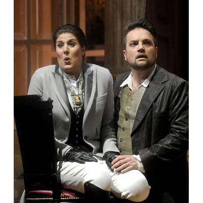 Daniel Ochoa als lüsterner Graf, Anja-Nina Bahrmann als seine selbstsichere Schwester und Alexandra Kloose als weihevolle Gemahlin ergänzten das Ensemble mit insgesamt soliden Interpretationen ihrer Rolle, unterstützt vom schmissigen, jedoch stets klug auf die jeweiligen Sänger abgestimmten Dirigat von Alfred Eschwe. Zwar drohten die rhythmischen Kapriolen der Partitur bei den Tutti immer wieder, das Ensemble aus der Kurve zu tragen. Es brachte sich aber immer noch gerade rechtzeitig auf Spur - in einer Inszenierung, die immer wieder neben dieser war.