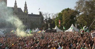 Was wäre eine Fußball-Europameisterschaft ohne ausgelassenes Partyfeeling? Die Stadt Wien rüstet sich jedenfalls für die größte Fanzone, die Österreich jemals gesehen hat. Der Kernpunkt des wuchtigen Party- und Eventareals bildet der Rathausplatz. Bereits von weitem erkennt man an den hohen Zäunen, dass der mondäne Ort hermetisch für feierwütige Fans abgeriegelt wird.