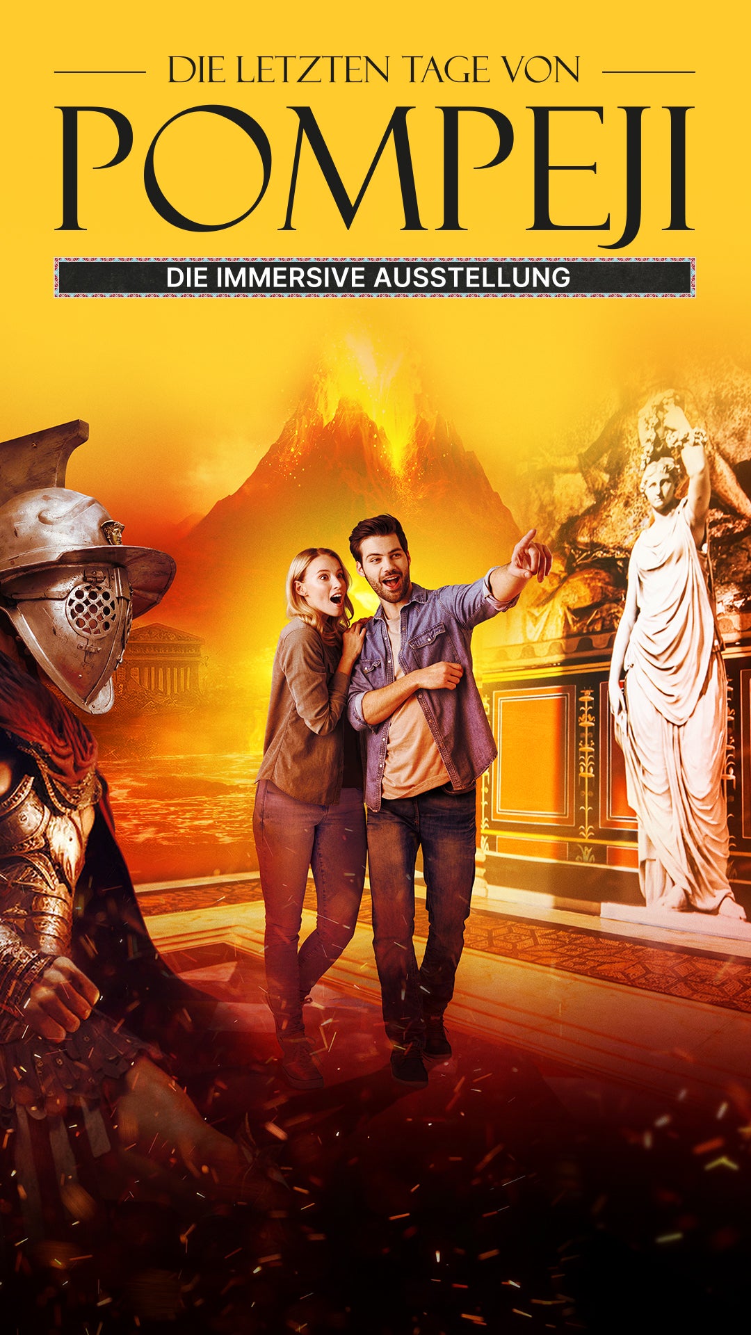 Fesselnde Virtual-Reality-Erlebnisse, auch bei einem Gladiatoren-Kampf und ein Metaversum mit eigens kreierten Avataren, lassen die Besucher das tragische Ende Pompejis durch den Ausbruch des Vesuvs hautnah erleben. Dazu gibt es faszinierende Exponate und Artefakte und einen Ausstellungsbereich über das römische Reich.