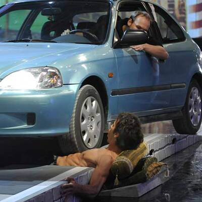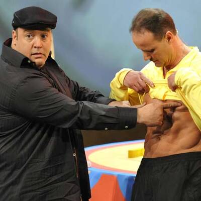 Die Show herausreißen konnte auch die Österreicher-Wette nicht: Wolfgang Stefan Schaar aus Kärnten wollte nur mit Kraft seiner Bauchmuskeln 15 Gummibärchen in einen Basketball-Korb hüpfen lassen. Der Kärntner schaffte nur die Hälfte und ging wie schon 2000, als er schneller als ein Pferd sein wollte, als Verlierer aus der Wetten, dass..?-Halle.