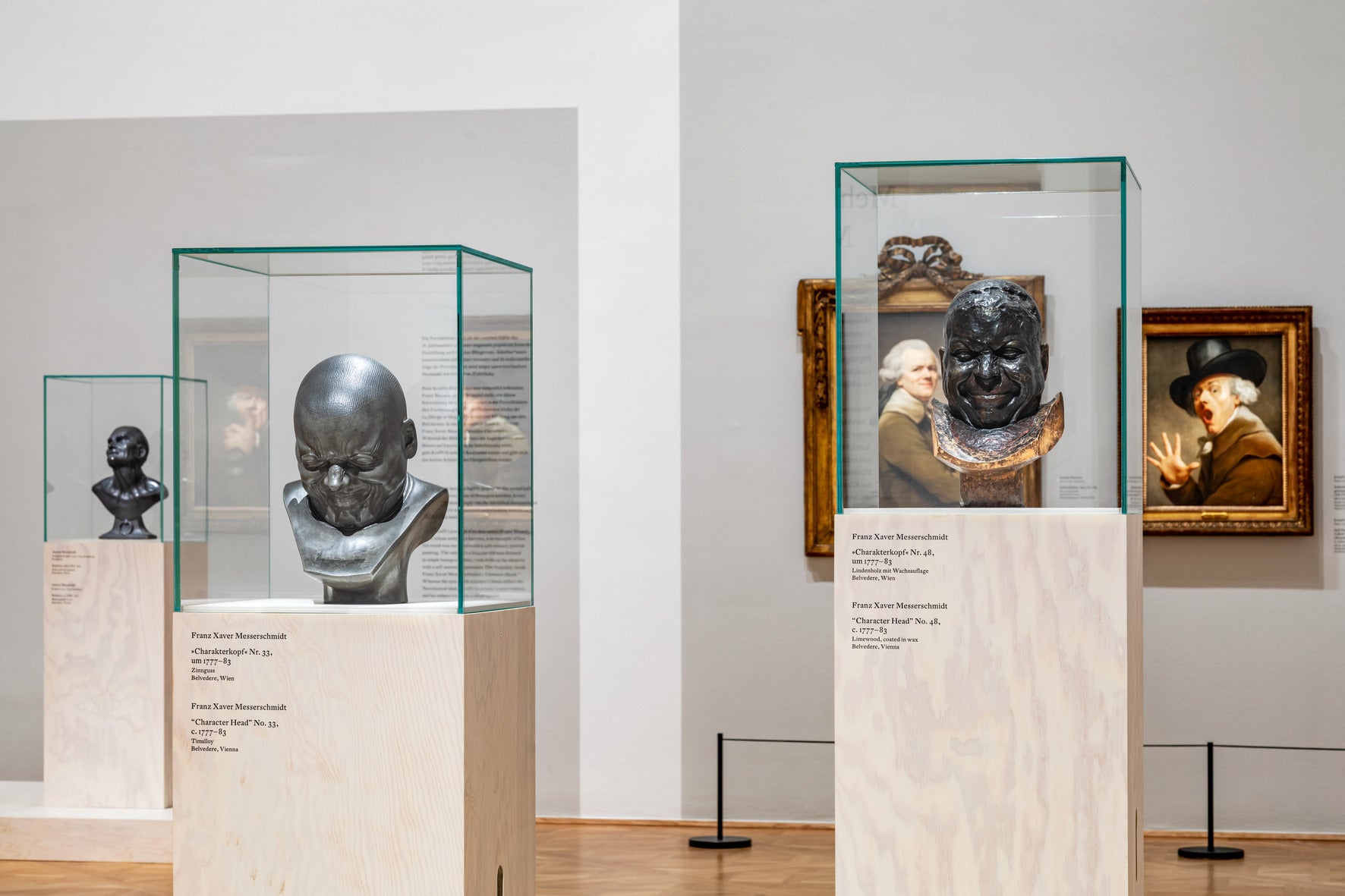 "Es handelt sich bei Messerschmidts Serie um keine Darstellung von unterschiedlichen Charakteren, sondern vielmehr um eine Sammlung an unterschiedlichen Mimiken", erläuterte Katharina Lovecky, die mit Georg Lechner die Ausstellung kuratierte. "Er ging ja von seinen eigenen Gesichtszügen aus." Im Kontrast dazu weist man auf die Versuche des Schweizer Pastors und Physiognomen Johann Caspar Lavater hin, von Gesichtszügen auf das Wesen eines Menschen zu schließen. Verdeutlicht wird, wie Messerschmidt mit dieser Arbeit mit dem strengen Klassizismus seiner Zeit bricht.