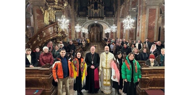 Der Bischof sprach in einem Grußwort seinen Dank all denen aus, die den nach Österreich Gekommenen helfen. Er sagte aber auch all denen, die hier fern von ihrer Heimat und mit großer Angst um ihre Angehörigen die Zeit verbringen, zu, dass sie von seinem Gebet begleitet werden und er sicher sei, dass Gottes Hilfe ihnen Frieden und innere Ruhe schenken werde.