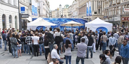 Vermeintliche Talente fanden sich vor dem DSDS-Truck am Wiener Graben ein.