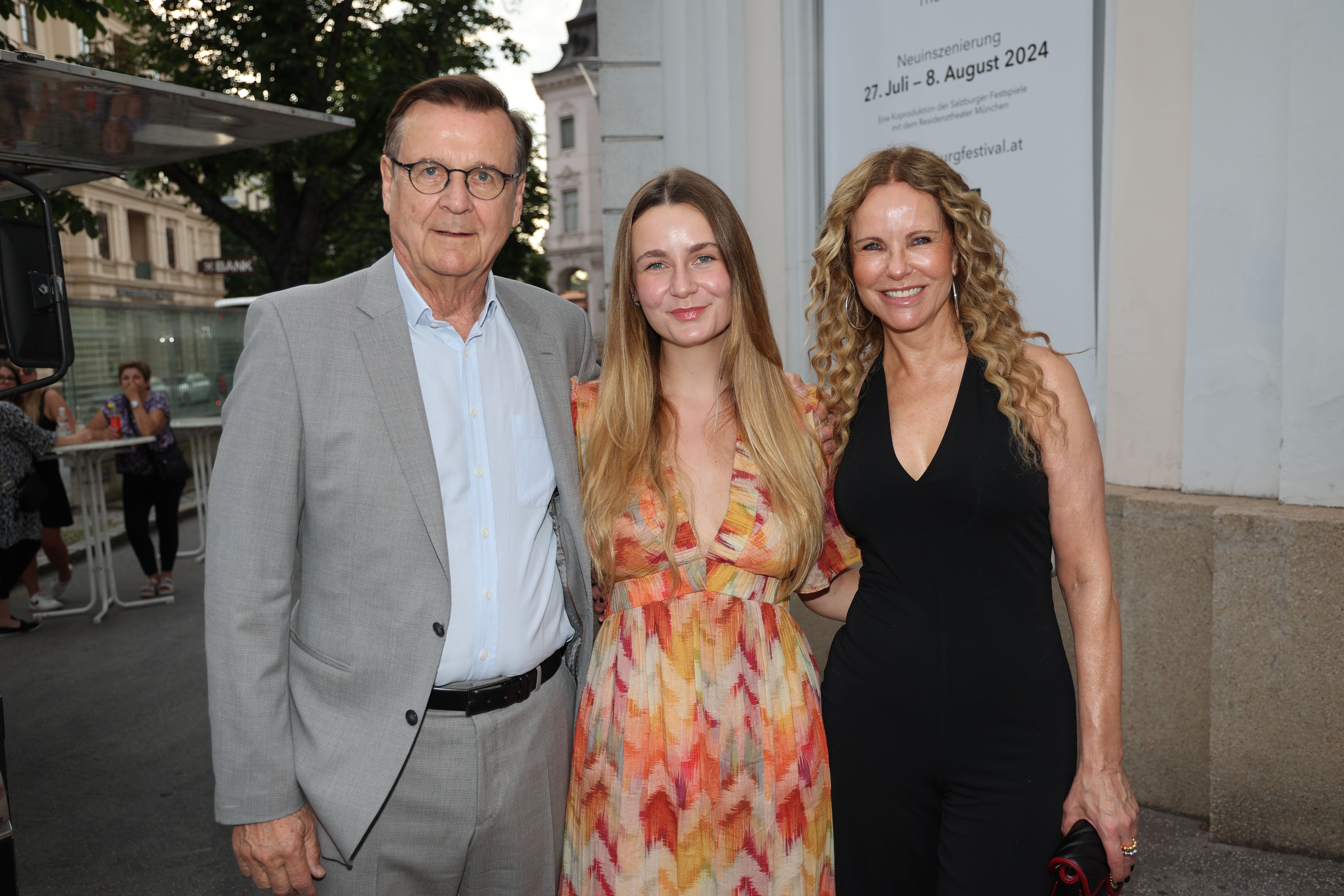 Ein Teil des Festspielgeschehens verlagerte sich Samstag abends auf die andere Seite der Salzach. In Sachen Schauspiel feierte man mit „Sternstunden der Menschheit“ im Landestheater Premiere. Festspielpremiere dabei auch für Elisabeth Prinzessin Auersperg-Breunner, eine der treuesten Besucher des Festivals. Ebenfalls Festspielpremiere heuer für Moderatorin Katja Burkhard – sie kam mit Tochter Marie Therese und Ehemann Hans Mahr. „Leider sind wir heuer nur ganz kurz in Salzburg, eine Oper noch und dann müssen wir schon wieder abreisen“.