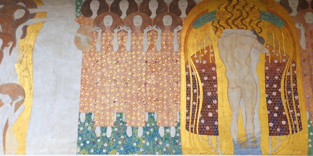 Gustav Klimts weltberühmter Beethovenfries aus dem Jahr 1902 wurde für die Wiener Secession geschaffen, wo er seit 1986 auch wieder zu sehen ist.