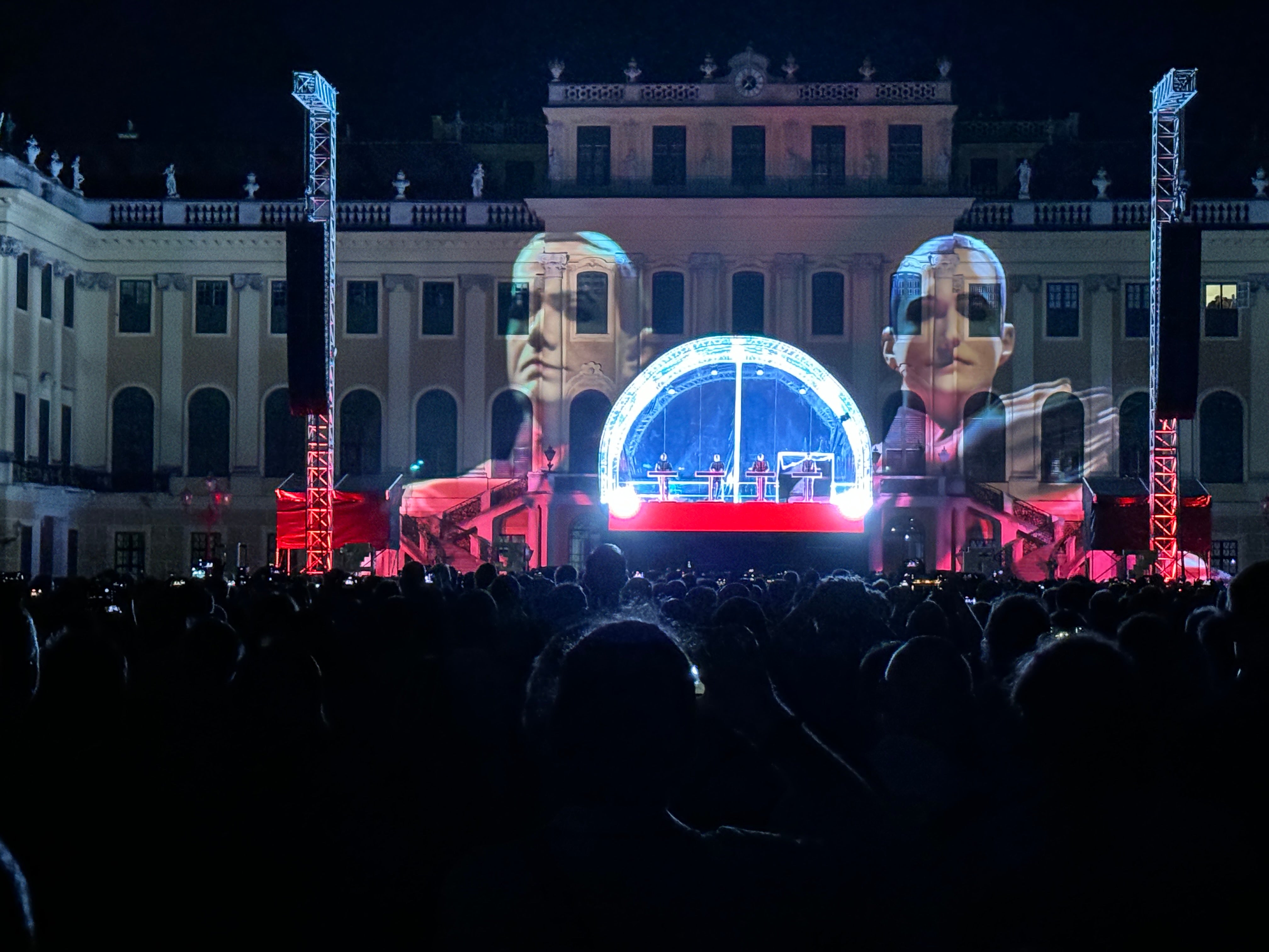 Konzertspektakel in Wien: Kraftwerk verwandelten am Samstag das ehrwürdige Schloss Schönbrunn mit einem beeindruckenden Multimedia-Spektakel zum Open-Air-Kino.