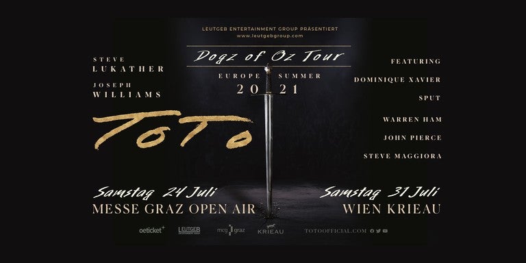 Im Rahmen ihrer Dogz of Oz Tour – Europe Summer 2021 werden TOTO am 24. Juli 2021 in Graz und am 31. Juli 2021 in Wien auftreten.