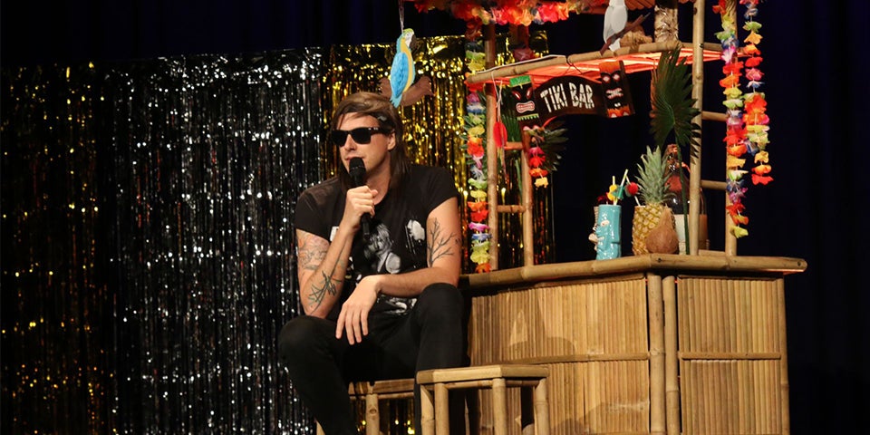 Gold-Vorhang („Um 3 Euro vom Kik.“), eigene Tiki-Bar, den Roadie Rudi und ein mit roter Kordel abgeschirmter Präsidenten-Schreibtisch - Marco Pogo macht nach Punk und Politik nun auch Kabarett. Am Montag ging im ausverkauften Wiener Orpheum die Premiere von „Gschichtldrucker“ über die Bühne. Mit einem an einem Boxkampf erinnernden Intro („Gleich auf englisch natürlich! Denn wenn ich dann im Madison Square Garden spielen muss, brauche ich es nicht mehr zu ändern.“), dem geheimen Tagebuch des Bundespräsidenten Pogo aus dem Jahr 2056 („Nein so sind wir nicht. Wir sind nicht alle so deppat. Ich will ein Präsident für alle Österreicherinnen und Österreicher und alle Menschen, die hier leben, sein. Egal ob sie Bier, Wien, Prosecco oder Tschopperlwasser trinken.“) und Gags über Musik und Politik wie „Wenn das Geld stimmt, spiele ich sogar am ÖVP Parteitag.“, „Gernot Blümel hätte seine Inkompetenz durch die Verwendung eines Taschenrechners relativ einfach kaschieren können.“ oder „HC Strache hat mit Brille doppelt so intelligent ausgesehen. Aber das doppelte von Null ist ja auch Null.“