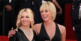 Steven Soderbergh präsentierte am Mittwoch in Cannes seinen Film "Che". Unter den Besuchern die beiden Blondinen Madonna und Sharon Stone.