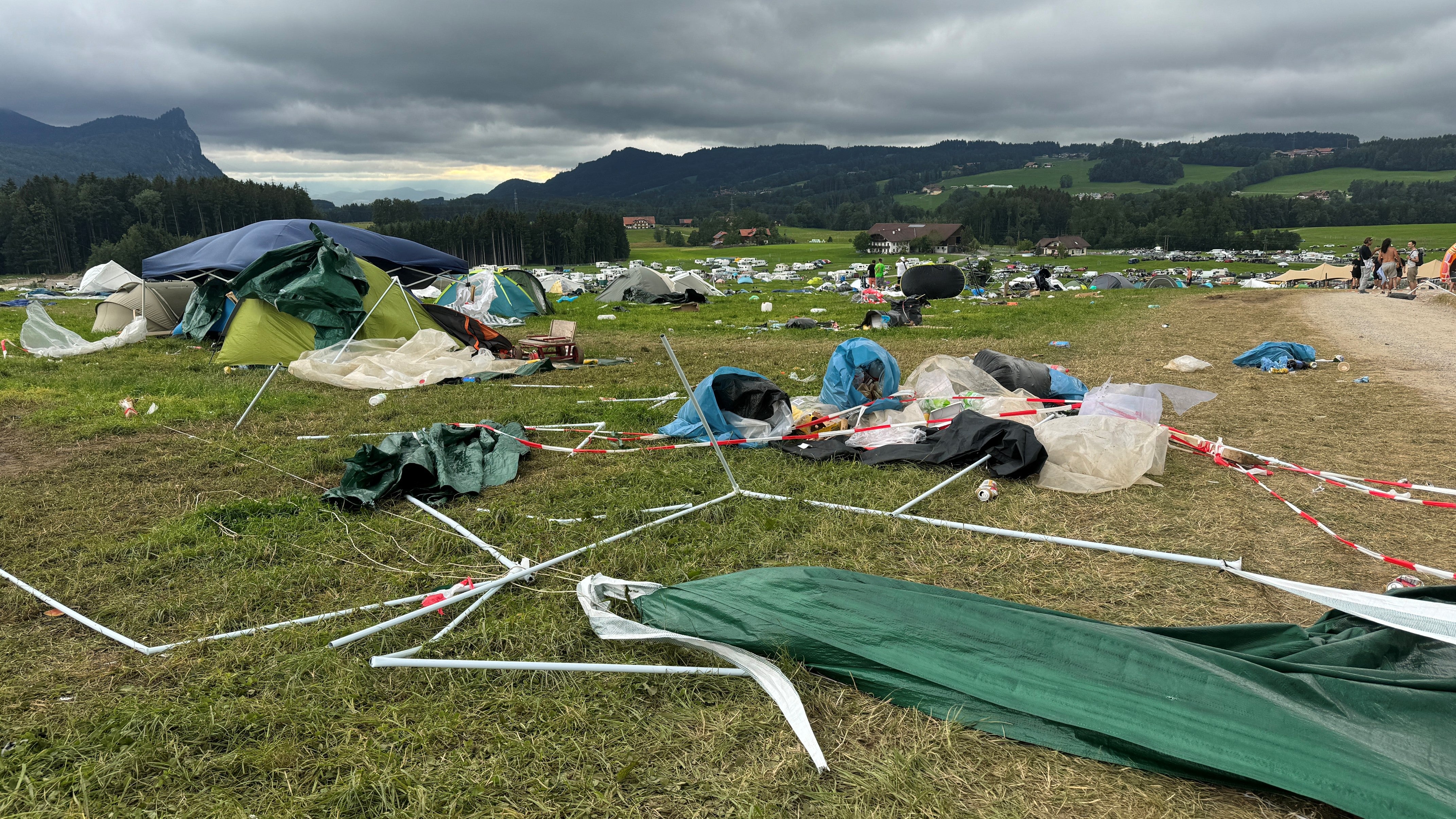 Ein Unwetter fegte über das Electric Love Festival in Salzburg. Die Schäden am Campingplatz sind bis dato kaum zu überblicken.