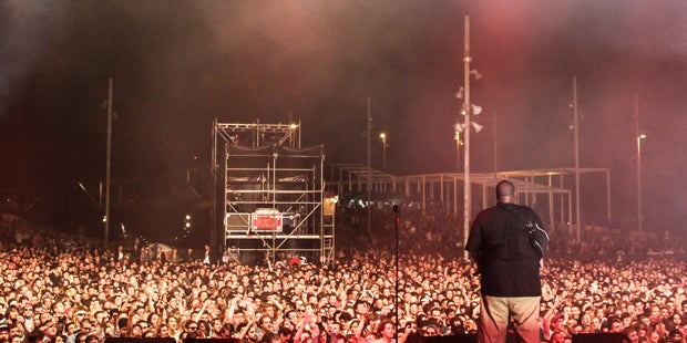 Es gibt Bands die hier und jetzt brennen. Run The Jewels machen alles richtig und das Publikum liebt sie dafür. Der Energielevel erreicht höchste Höhen. Eine gebrochene Schulter soll Killer Mike haben, klar, man sieht den Gips und die Schlaufe, nur der Wirbel lässt es einen nicht so recht glauben. Zu einem alten Queen-Hadern treten sie vor den Vorhang, die Worte brechen ohne Pause heraus, die Massen in den ersten hundert Reihen (also alle) hüpfen wie die Deppen, und da oben auf der Bühne herrschen die Champions: El-P und Killer Mike.