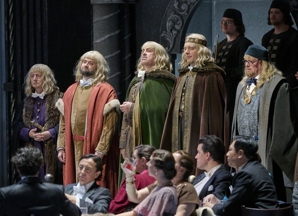 Die Elisabeth von Malin Byström schmilzt bei diesen Klängen jedoch dahin. Im 2. Aufzug, der von den 1920ern in die 30er gesprungen zu sein scheint, hat sie als Magda-Goebbels-Wiedergängerin ihren Einsatz, mit kehlig-dunkler Schattierung gleichsam das klangliche Pendant zu Hilley. In dieser steifen Halle der Wartburg von Landgraf Hermann (Publikumsliebling Günther Groissböck) treten die Sänger in einem Mittelalterschauspiel gegeneinander an und gleichen mit ihren blonden Perücken mehr einem Treffen der Kelly Family denn Minnesängern im Krieg gegeneinander.