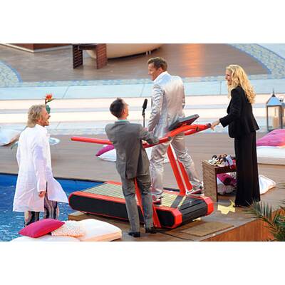 Einen Spruch von Gottschalk musste Ballack sich dann aber doch noch anhören. Wett-Kandidatin Sabrina wollte trotz gebrochener Rippe 30 Hula-Hoops am Stück schaffen... und zwar mit einen Lkw-Reifen. Ob er es denn angesichts dieses Einsatzwillens doch noch mit der WM-Teilnahme probieren wolle, fragte Gottschalk Ballack. Der Mittelfeldspieler rang sich ein mildes Lächeln ab.