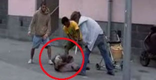 (c) Snapshot Oe24 - Auf extrem brutale und äußerst populistische Weise wird die Frau von den Halbwüchsigen niedergeschlagen.