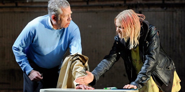 Österreichische Erstaufführung am Wiener Akademietheater: Regisseur Stephan Kimmig reduziert die drei Zwei-Personen-Szenen, die in der Nähe des Flughafens London-Heathrow spielen, auf ihr dramatisches Skelett.