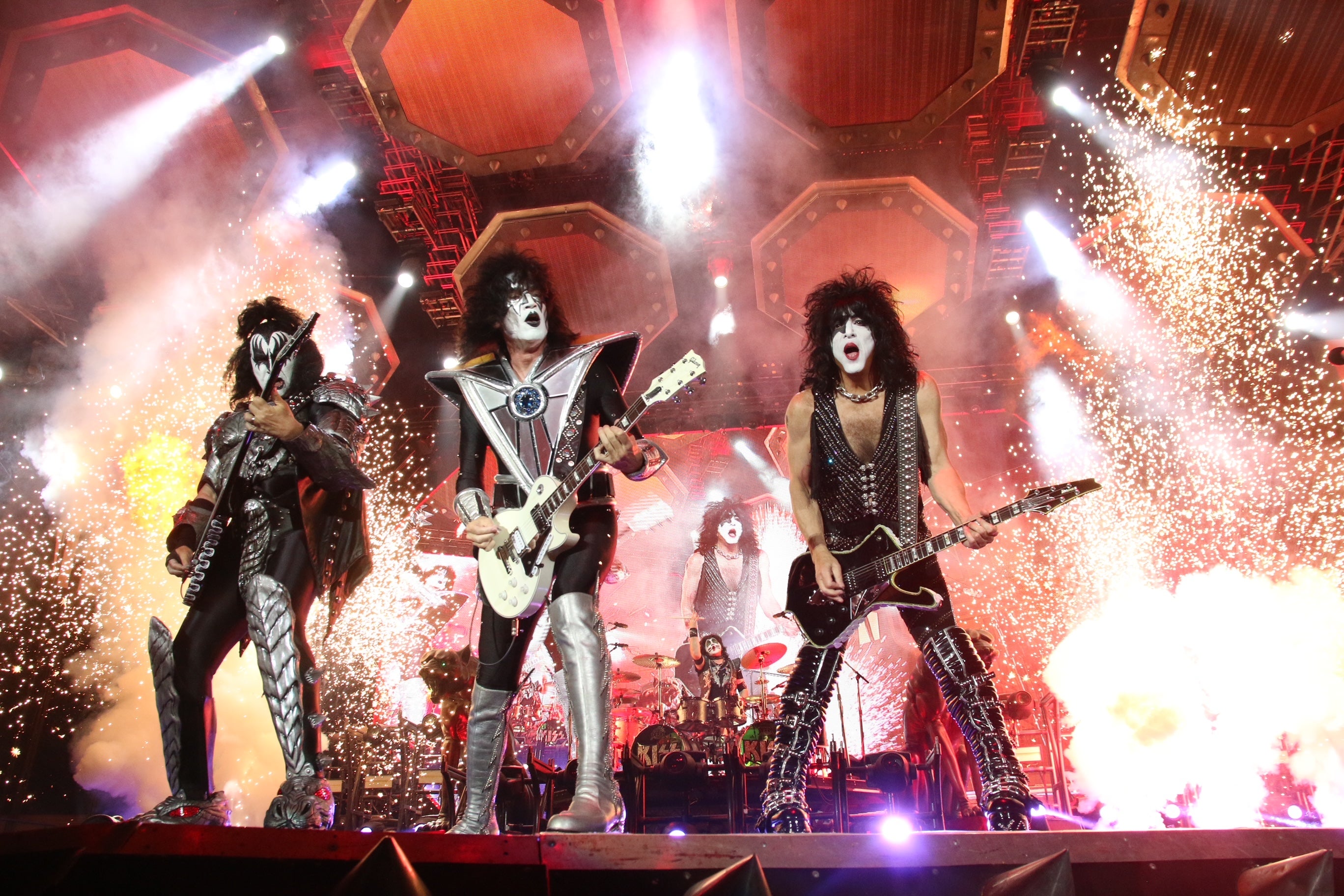 Vom Opener „Detroit Rock City“, wo man wie Außerirdische auf einer Hydraulikplattform vom Hallendach herunterschwebte, bis zum als Pyro-Party inszenierten Finale „Rock and Roll All Nite“ ließen es Kiss in der Stadthalle noch einmal so richtig krachen. Und das im wahrsten Sinne des Wortes: Ohrenbetäubende Explosionen, mehr Feuerwerk als zu Silvester und das obligate Blut-und-Feuer-Spucken. Als Soundtrack zu diesen seit Jahrzehnten erprobten Show-Ritualen lieferte man die 23 größten Hits wie „I Love It Loud, „Lick It Up“ und das unverwüstliche „I Was Made for Lovin' You“.
