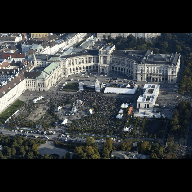 Über 100.000 Menschen machen sich auf dem Heldenplatz für Flüchtlinge stark.