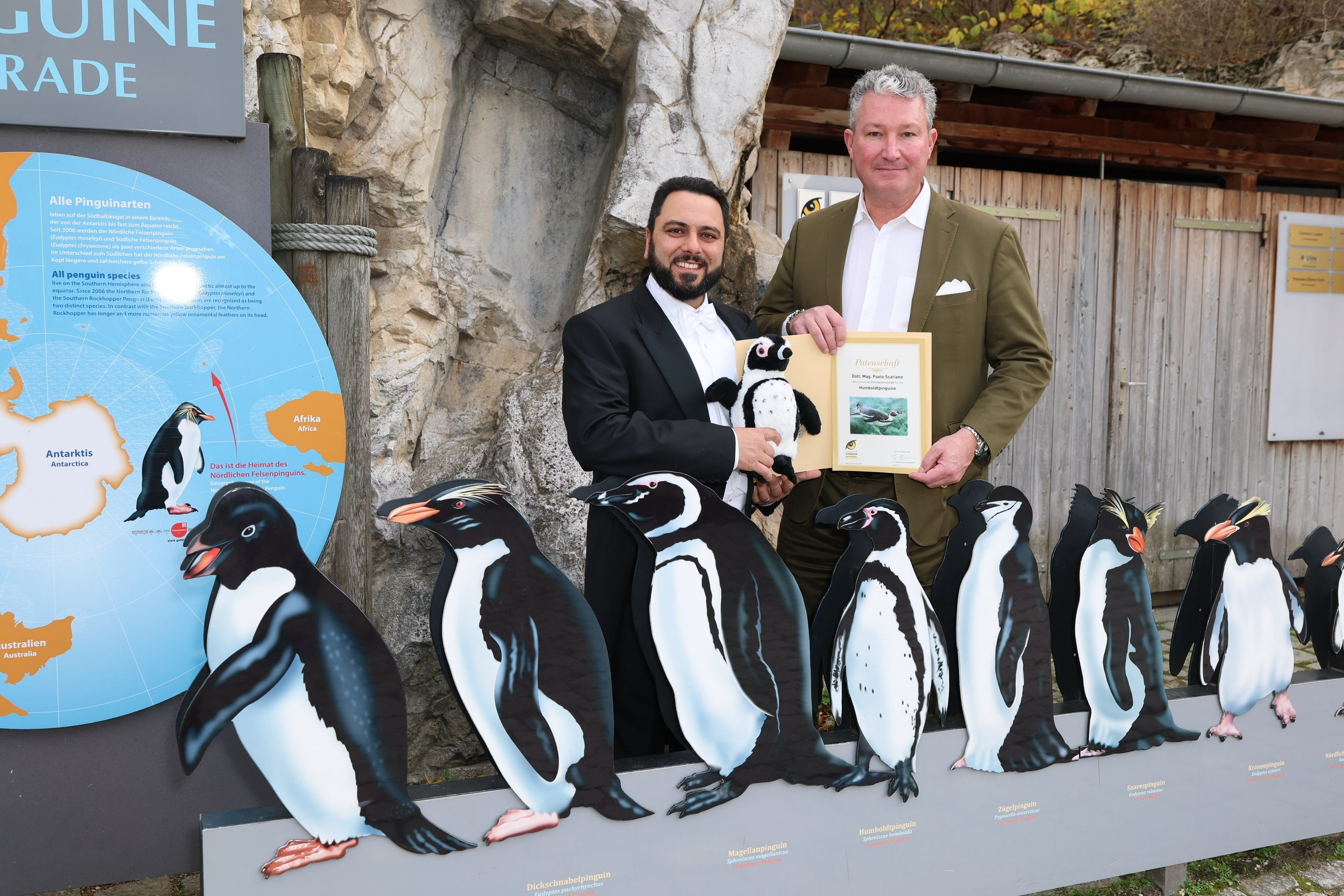 „Pinguine und ich haben vieles gemeinsam“ lachte der Austro sizilianische Tenor Paolo Scariano als er die Patenschaft über einen Humboldt Pinguin in Schönbrunn übernahm „die Statur, den Gang und die Liebe zum Meer!“