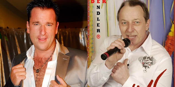 Lange Lederfransen baumeln an seiner schwarzen Jacke. Frank Wendler (Bild oben rechts), der es als "singender Gas-Mann" zu Schlagzeilen brachte, verlässt nach dem Urteil im Sängerstreit "Wendler gegen Wendler" mit einem Teilerfolg in der Tasche Saal A 224 des Düsseldorfer Oberlandesgerichts. Sein Namensvetter, Schlagerstar Michael Wendler ( "Sie liebt den DJ"), ausgezeichnet mit Gold- und Platin-Platten, darf nicht länger nur als "Der Wendler" auftreten. Das hat das Gericht am Dienstag entschieden. Im Gegenzug muss Frank Wendler seine Wortmarke "Der Wendler" löschen.