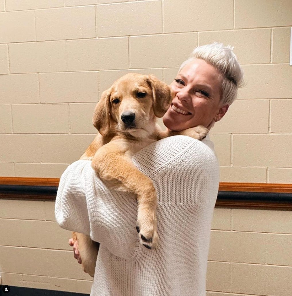 Es stellte sich heraus, dass die Sängerin P!NK (45, "Just Give Me A Reason") über Social Media auf die Hündin aufmerksam geworden war und sofort helfen wollte. Schon bald hielt sie den kleinen Graham Cracker, einen der Welpen, in ihren Armen.