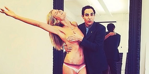 Nackt. „Busenhalter“ – das ist der neue Traumjob von Project Runway-Juror Zac Posen (33). Heidi Klum veröffentlichte jüngst ein heißes Instagram-Foto, auf dem ihr der Jury-Kollege (41) an die nicht vorhandene Wäsche gehen durfte: Sie mit nicht mehr als einem knappen Höschen bekleidet – er mit Hans und Franz (so taufte sie bekanntlich ihre Brüste) in den Händen. „Brauche was zum Anziehen“ schrieb sie dazu.