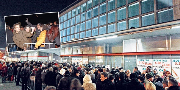 Die öffneten sich mit 45 Minuten Verspätung. Unter großem Jubel stürmten die ersten Techno-Fans in die abrissreife Halle, um sich ihre Eintrittskarte zu holen. Witzig: Die kaufte man wie früher an einem der ÖBB-Schalter.