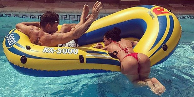 Extremsportler Felix Baumgartner kann es nicht lassen: Schon wieder postete er ein Foto auf Instagram, das die Wogen in den sozialen Netzwerken hochgehen lässt. Das Foto zeigt All-Felix mit seiner Freundin Mihaela Schwartzenberg in einem Gummiboot im Pool. Mihaela streckt dabei ihren prallen Po in die Kamera, Felix zielt mit seiner Hand, als würde er ihr den Hintern versohlen.