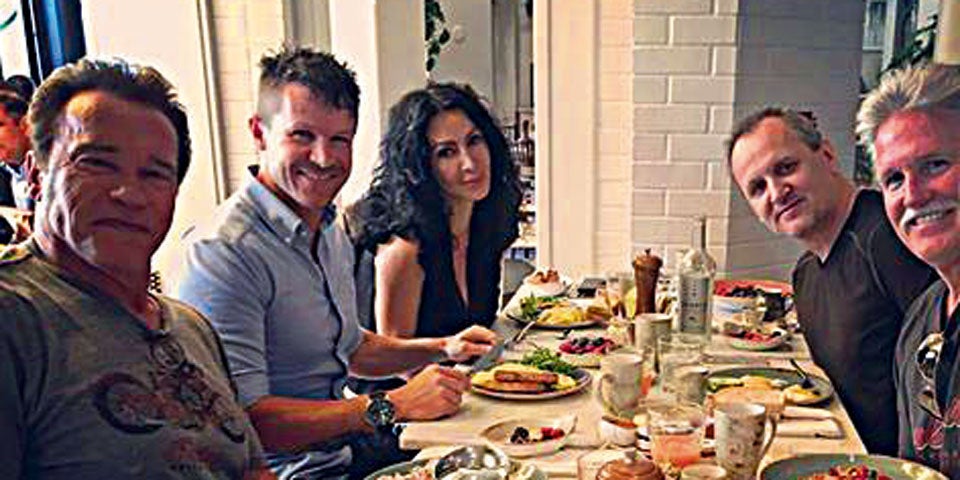 Party. Baumgartner feierte am Donnerstag lieber mit Arnold Schwarzenegger und Freundin Mihaela seinen Geburtstag in Los Angeles.