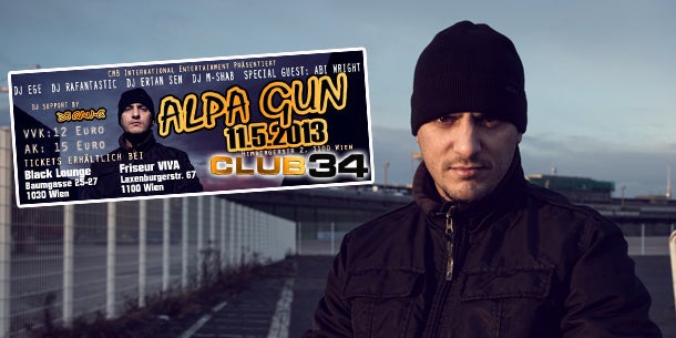 Alpa Gun arbeitete sich über die Jahre in Sidos Fahrtwasser stetig nach oben. Heute ist er einer der erfolgreichsten Aggro-Rapper im deutschsprachigen Raum. Am 11. Mai holt CMB International Entertainment das Talent in den Club 34 in Wien.