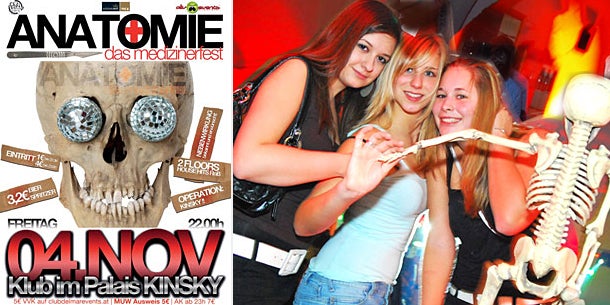 Nach einer mehr als halbjährlichen Frischzellenkur (Botox, Straffungen, Massagen, Alkohol) ist Anatomie-das Medizinerfest wieder da und erstrahlt in neuem Gewand. Die gesündeste aller Partys findet am Freitag in neuer Location, im Club im Palais Kinsky statt.