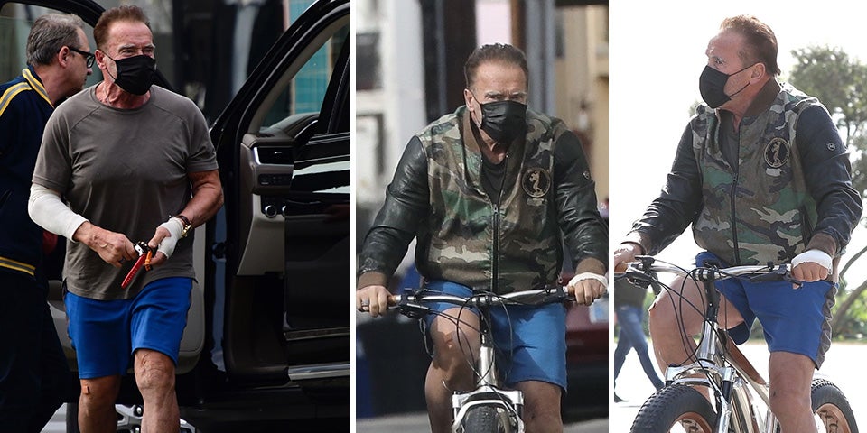 Während der vorherrschenden Pandemie setzt Schwarzenegger vermehrt auch für längere Strecken auf sein Fahrrad, wie es scheint. Dabei trägt der Schauspieler und Ex-Gouverneur eine Gesichtsmaske. Nun ist er in Santa Monica von Fotografen abgelichtet worden. Wie immer macht er dabei eine gute Figur auf seinem Rad. Doch etwas anderes sticht auch ins Auge: Er ist an der Hand und am Bein verletzt. Seine Hand ist mit einem Verband geschützt, sein Bein hat nur ein Pflaster bekommen.