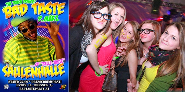 Die legendäre Bad Taste Party meldet sich rechtzeitig nach den Energieferien, am 09. März zurück und macht einen auf „Big Willie Style“ und bittet den Prinz of Bel Air sprichwörtlich zum Tanz. Club del Mar Events feiert nach dem sensationellen Erfolgen wieder in der Säulenhalle (neben Volksgarten, ehemalige Banane). Wie immer gilt das Motto für diesen Abend: Stylishe Club-Atmosphäre trifft auf stilistische Outfit-Verbrechen.