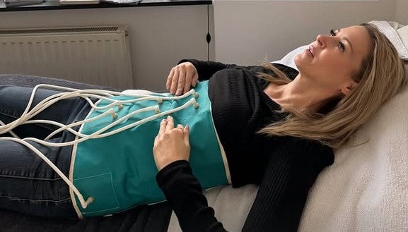 Jetzt zeigt sich Simone Lugner mitten bei der Arbeit. Auf Instagram postete sie Fotos von sich, die einen bizarren Einblick in ihre neue Routine geben. „Hier wurde mir die Bauchmodelage angelegt, frisch mit Meridian-Gel geschmiert und gewickelt“, kommentiert sie das Bild, das sie auf einem Behandlungsbett liegend zeigt. Zu sehen ist ein türkisfarbener Bauchwickel, der von einem Gewirr aus weißen Kabeln und Sonden durchzogen ist.
