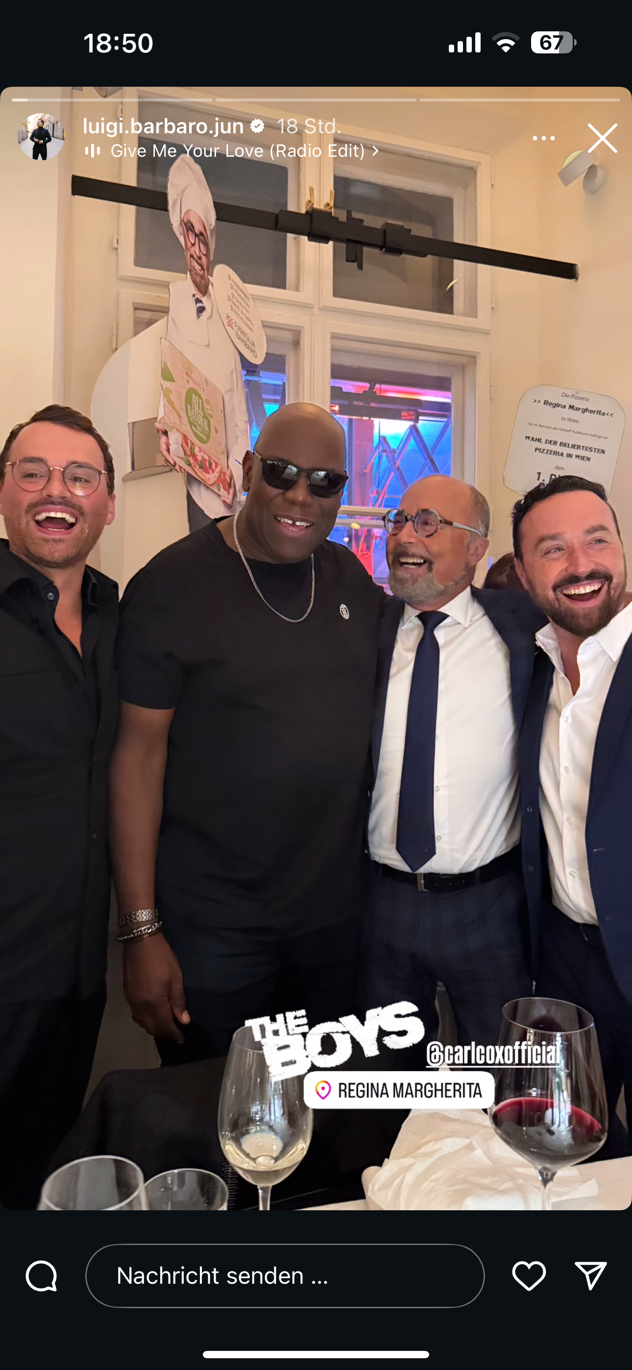 Bevor Cox jedoch gegen 23 Uhr die Turntables übernahm und Klassiker wie auch brandneue Tracks auflegte, ließ er es sich in der Wiener Innenstadt gutgehen. Gemeinsam mit seiner Crew kehrte er im Traditionslokal „Regina Margherita“ ein, das für authentische italienische Küche bekannt ist. Gastgeber Luigi Barbaro und seine Söhne empfingen den Weltstar herzlich. „Wir sind so glücklich. Er und seine Crew waren richtig coole Gäste“, schwärmte Luigi Barbaro junior im Gespräch mit oe24.