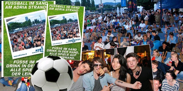 Anlässlich des großen deutschen Finale der Champions League werden gleich 4 große Leinwände und fünf LCD-Fernseher am Wiener Donaukanal, genauer gesagt an der Adria Wien, aufgestellt. Für einen entspannten Fußball-Abend sorgen auch die garantiert regensicheren Plätze (bei Regen wird die große Leinwand unter die Salztorbrücke gestellt, außerdem regensichere Plätze vor der Hauptbar und im Glashaus).