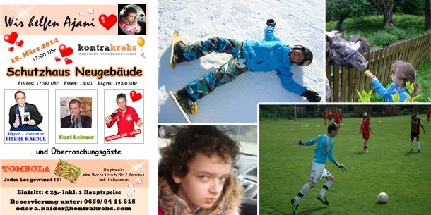 Im dem großen "Wir helfen Ajani"-Charity Event, das am 28. März in Simmering stattfinden wird soll das Geld für die Behandlung eines schwerkranken Mädchens aufgetrieben werden und jeder ist herzlich dazu eingeladen. Denn die Veranstaltung verspricht, neben dem Gefühl, etwas Gutes zu tun, auch jede Menge Highlights. Der Magier Pierre Mardue wird auf der Bühne seine Zaubershow zeigen. Wolfgang Beer, der Mann der 1000 Stimmen wird die Gäste mit Schlagern, Parodien und Hits der letzten Jahrzehnte unterhalten. Für Spreis und Trank wird gesorgt und Überraschungsgäste sind angekündigt. Das allerbeste zum Schluss: Neben dem Showprogramm erwartet die Besucher eine super Tombola, bei der jedes Los gewinnt. Als absoluter Hauptgewinn wird ein Urlaub für zwei Personen in Kärnten inklusive Halbpension verlost.