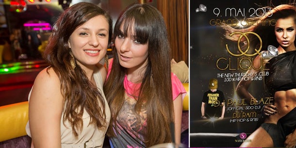 "Clique" wird nicht nur bei seiner großen Eröffnung für beste HipHop & RnB Tunes sorgen, denn ab jetzt können alle Fans von HipHop & RnB jeden Donnerstag wild abtanzen und abfeiern. Am 9. Mai werden die DJs Paul Blaze und DJ Ram im Scotch Club ordentlich einheizen.