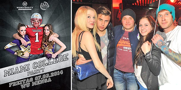 Amerikanischen Filme machen zuweilen richtig Lust, auch einmal eine der berüchtigten Partys zu besuchen, die regelmäßig an Colleges gefeiert werden. Die WU Mensa bietet nun am 7. März unter dem Motto "Miami College" allen Partyfreudigen die Möglichkeit, in die wilde Welt der College-Partys einzutauchen und das ist nicht nur für Studenten ein Spaß.