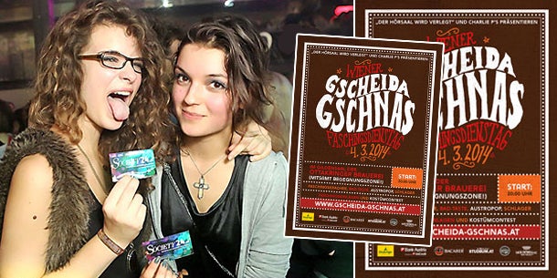 "Narrisch-gute" Feste ist man von "Der Hörsaal wird verlegt" und dem "Charlie P's" ja spätestens seit dem "Paddysfest" oder dem "Scaryfest" gewöhnt, so richtig wild und ausgelassen wird es nun erstmals auch am 4. März bei der Premiere von Wiens größtem Fest zum Faschingsdienstag, dem "Gscheida Gschnas" in der Ottakringer Brauerei.
