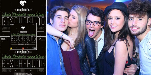 Santa Elephant steht vor der Tür- und zwar am Freitag, 21. Dezember 2012. Der Elephant ruft auf zur größten Bescherung Wien‘s in die kuschelige Babenberger Passage. Rockin around theElephant Tree, at the Christmas Party Hop….