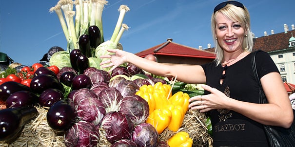 die Models des Jungbauern-Kalenders sollen die Wiener anlocken.