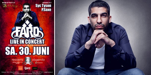 Der deutsche HipHop-Star Fard kommt am Samstag in die Residenz Zögernitz.