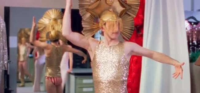 Moderator Michael Ostrowski ist darin in verschiedenen Outfits zu sehen. Als erstes inszeniert er sich als Showgirl, dann schlüpft er in einen zu großen Trachtenanzug. Zum Schluss mimt er den Gladiator mit viel Haut. Alles Looks führt er Vici Swarovski vor, die seine Partnerin ist bei der ESC-Moderation. Sie zeigt sich weniger begeistert...