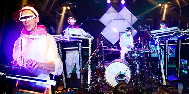Live-Drums sowie ein halbes Dutzend Synthesizer: Die Techno-Punk Combo Gudrun von Laxenburg brachten Dienstag Nacht die Partygäste im Wiener Flex ordentlich zum Schwitzen. Denn die 3-köpfige Combo weiß wie man mit brachialen Drums und einem halben Dutzend Synthesizern die Clubwände zum Wummern bringt. Das Beatgewitter aus Dubstep, Techno und Elektro-Elementen ließ auch Dienstag Nacht keinen Fuß mehr still stehen.