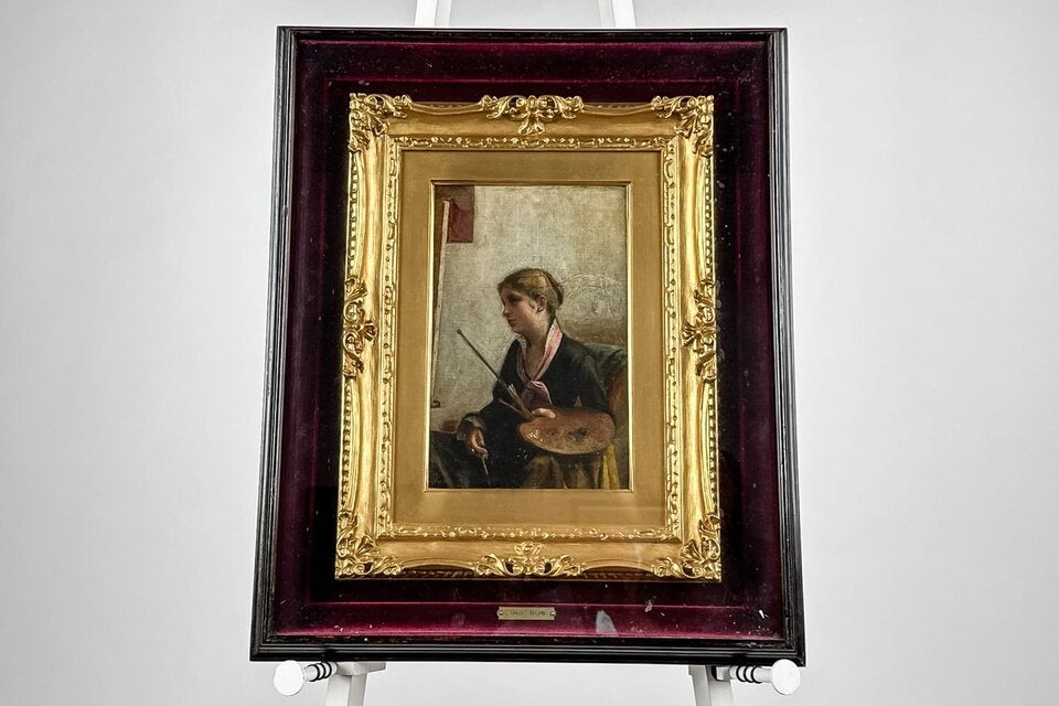 "Die Malerin vor der Staffelei" von Luigi Busi - handsigniert