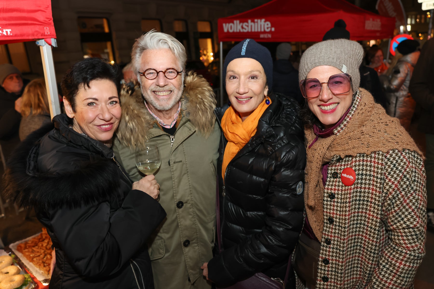 Unter den spendenfreudigen Gästen mischten sich zahlreiche bekannte Gesichter: Bezirksvorsteherin Saya Ahmad, Schauspielerin Konstanze Breitebner, Publikumsliebling Adi Hirschal, Kabarettistin Andrea Händler, Moderatorin Eser Akbaba, Weinmacher Thomas Podsednik, sowie die Gastgeber Volkshilfe-Geschäftsführerin Tanja Whesely und Ossi Schellmann.