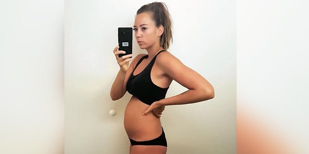 Marcels Laura zeigt ihren Babybauch. In zwei Monaten kommt Hirscher-Baby.