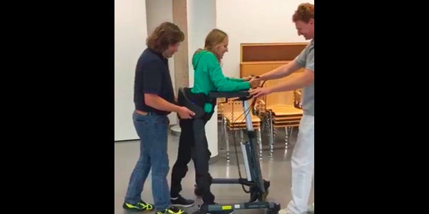 Grünberg: Ohne Exoskelett werde ich wahrscheinlich nie gehen können. Ich kann meine Beine vom Gehirn aus nicht ansteuern.